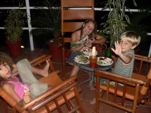 Maya, Emily and Gianluca at a party at Pajaro Azul.