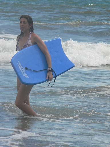 Christa with her boogie board at the beach.