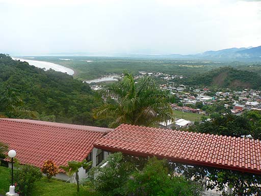 Looking down from Pajaro Azul (Blue Bird) to the town of Quepos and the ocean bay. Previous .... Next