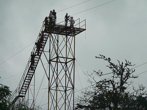 Zip line tower next to the restaurant. Previous .... Next People on the tower, ready to ride down the zip line. Back to the Summer Vacation, Costa Rica 2006 trip page