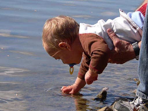 Hiking at Ceasars Creek Lake park. Mateo feeling the water.