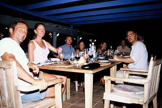 Dinner at the restaurant at the resort on Palmetto Point. Rod, Christa, Pete, Ann, Karen, Steve and Wim.