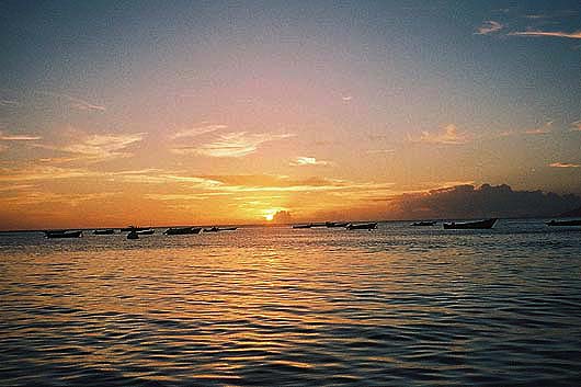A spectacular sunset. Taken from the dingy looking out past the local fishing boats as we make our way back to the boat.