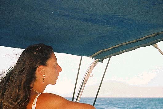 Christa on the sail to Nevis from St. Kitts.