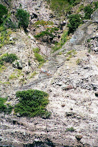 The old steps snaking up to the old Customs house from ages past. About one third of the way up, the group is doing "the pose".