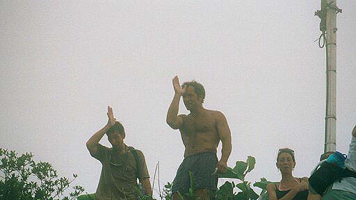 The top of the Mt. Scenery hike. Alex, Rod and Christa - Alex and Rod do the Rooster thing - because they can I guess.
