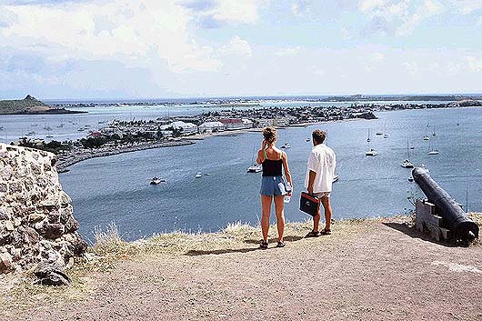 Rod and Christa look out over Marigot Bay from fort St. Louis.