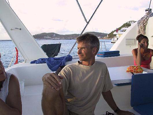 Brad and Christa relaxing on the boat in Marigot Bay.