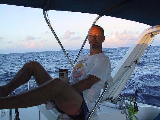 Sunrise after sailing all night on the way to St. Martin - Steve is on watch.