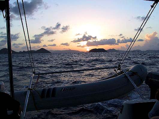 Sunset - leaving the BVI on our all night sail to St. Martin.