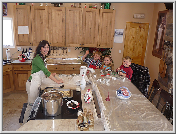 Christa, Gianluca, Jasmine and Mateo making Christmas cookies.