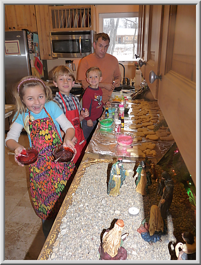 Jasmine, Gianluca, Mateo and Rod decorating Christmas cookies.