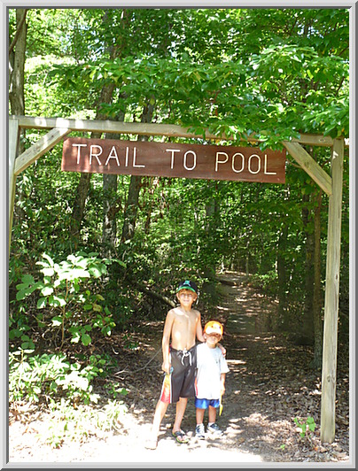 Gianluca and Mateo at the start of the trail to the swimming pool.