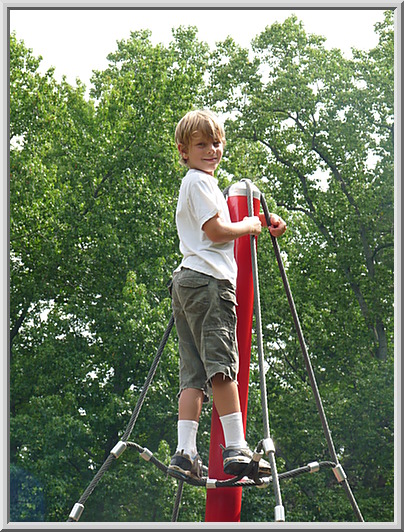 Gianluca at the top of the climbing web at the playground.