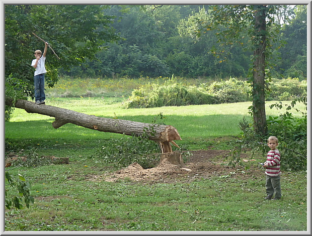 Gianluca and Mateo and the tree I just cut down