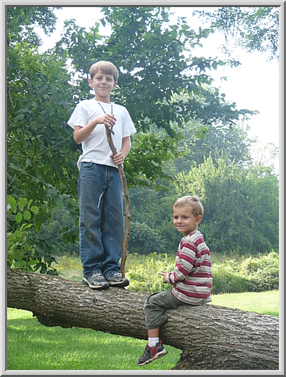 Gianluca and Mateo on my cut tree