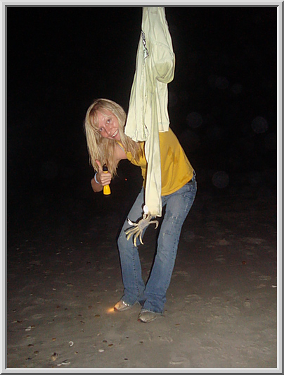 Katie with a crab on her shirt