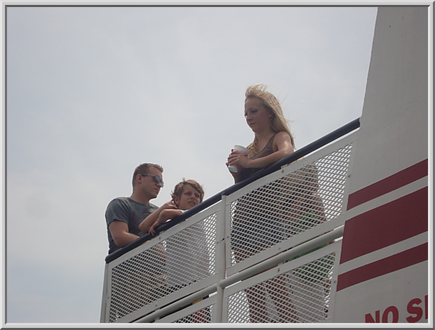 Nathan, Gianluca and Katie on the observation deck of the ferry