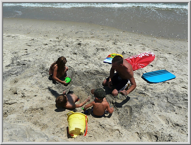 Tim, Mateo and Jasmin burying Gianluca on the beach