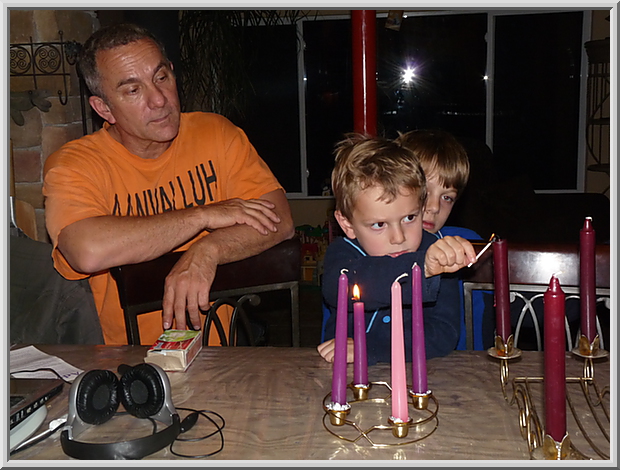 Rod, Mateo and Gianluca. Mateo lighting the advent candles.