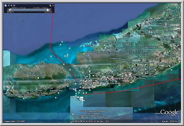 Chart of our trip through Key West and Hawk Channel to the Gulf of Mexico.