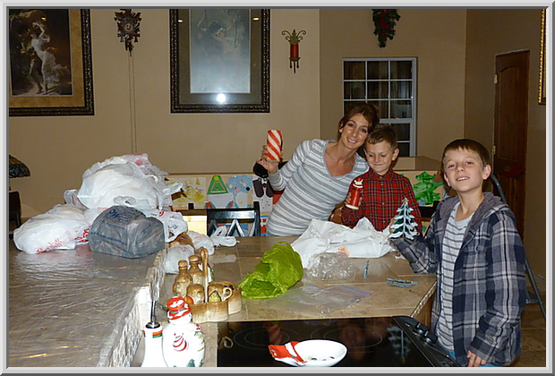 Christa, Mateo and Gianluca starting to set out Christmas decorations
