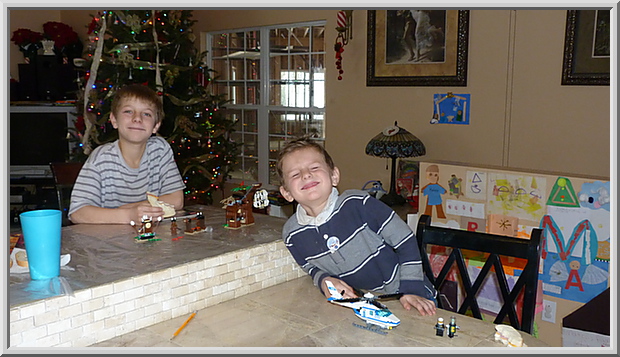 Gianluca and Mateo with their Lego creations