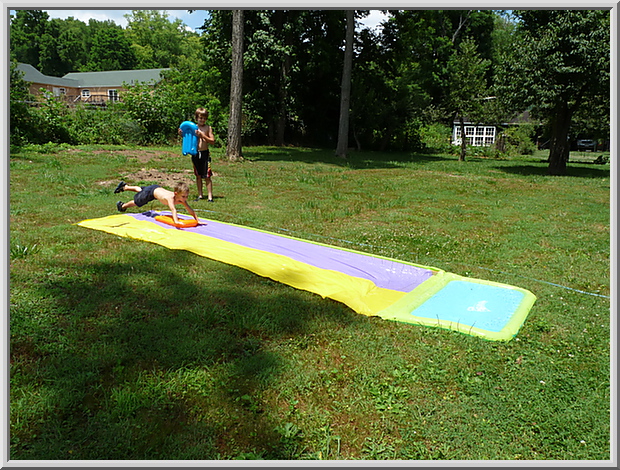 Mateo launching on the slip and slide