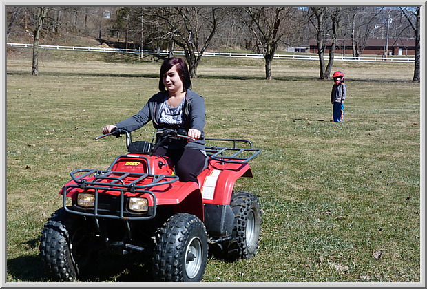 Rachael riding the Kawasaki