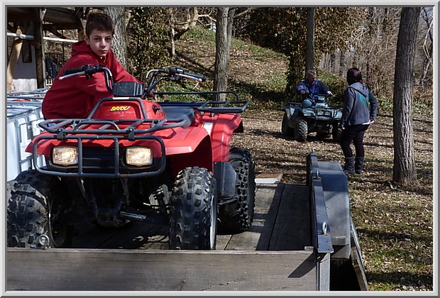 Unloading the two atv's from the trailer - Gianluca, Rod and Rachael