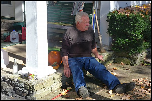 Dad on pumpkin carving day