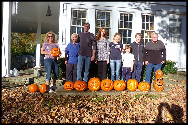 The pumpkin carvers - Vicki, Mom, Tim, Christa, Jasmine, Mateo, Gianluca and Dad