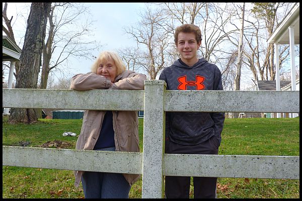 Grandma and Gianluca at the top fence looking down into the lower flooded field