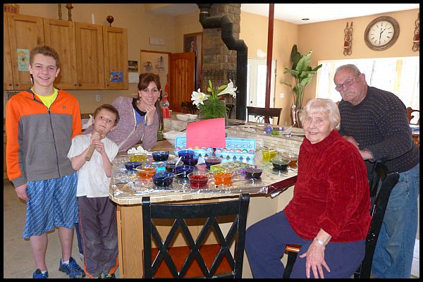 Gianluca, Mateo, Christa, Mom and Dad with all the egg colorings