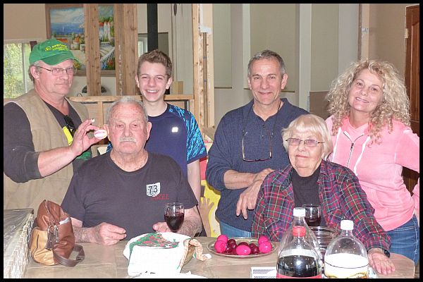 Jeff, Dad, Gianluca, Rod, Mom and Vicki before Easter dinner