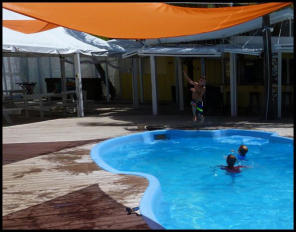 Mateo jumping in the pool at Grabbers