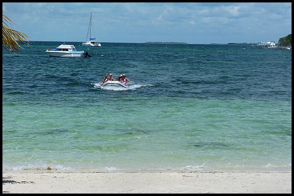 Our group dingying in to Grabbers from our boat moored in Fishers Bay