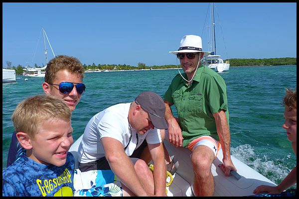 Dingying in to the beach at Grabbers - Isaac, Gianluca, Ian, Phil and Mateo