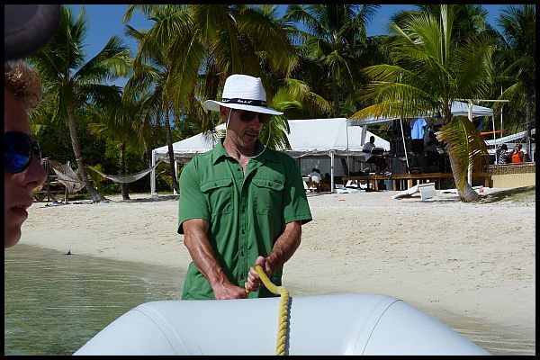 Phil pulling the dingy onto the beach at Grabbers