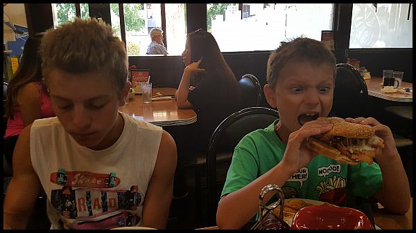Gianluca and Mateo at Red Robin with Mateo's big burger!